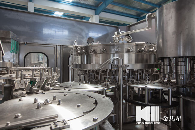 此設(shè)備主要應(yīng)用于灌裝飲料,包含沖瓶、灌裝和旋蓋三大功能。