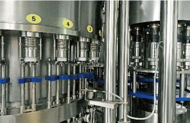 此設(shè)備主要應(yīng)用于灌裝飲料,包含沖瓶、灌裝和旋蓋三大功能。