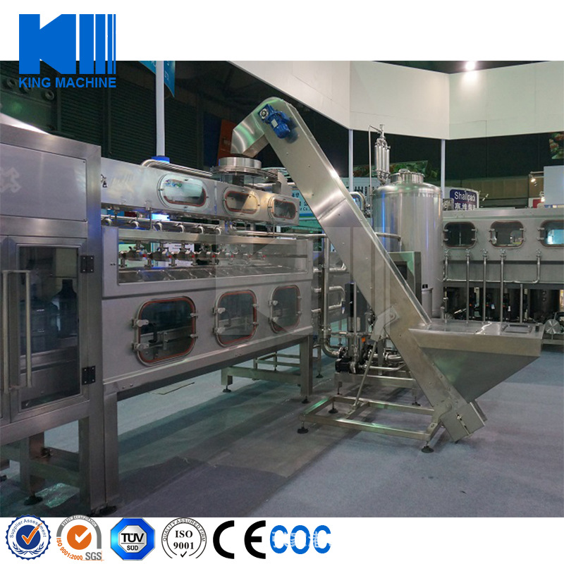 本設備集合了消毒、沖洗、灌裝和壓蓋,合四為一,能夠實現(xiàn)全自動桶裝水旋蓋。沖瓶機使用多種沖品液和消毒液,以保證獲得較佳沖瓶和殺菌效果。消毒液可以循環(huán)使用,節(jié)省消耗。