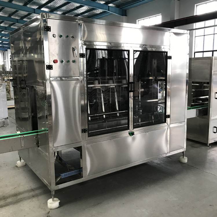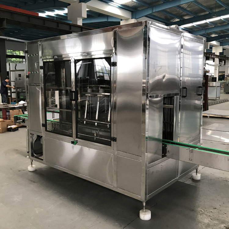 本設(shè)備集合了消毒、沖洗、灌裝和壓蓋,合四為一,能夠?qū)崿F(xiàn)全自動(dòng)桶裝水旋蓋。沖瓶機(jī)使用多種沖品液和消毒液,以保證獲得較佳沖瓶和殺菌效果。消毒液可以循環(huán)使用,節(jié)省消耗。
