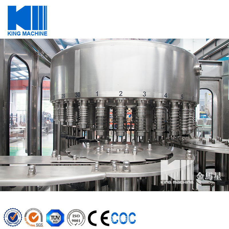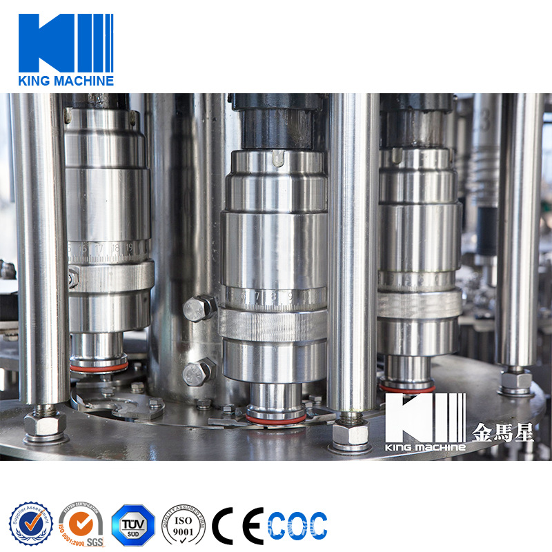 飲用水灌裝機(jī)集沖洗、灌裝、旋蓋于一體,全過程自動(dòng)化運(yùn)行,主要適用礦泉水、純凈水等不含氣飲料的沖瓶、灌裝、封口連續(xù)作業(yè)。本機(jī)大部分電器系統(tǒng)零件均采用國外較好產(chǎn)品,所有與液料接觸的地方均采用優(yōu)質(zhì)的不銹鋼材料制作,主關(guān)鍵部件采用數(shù)控機(jī)床精密加工, 整機(jī)光電檢測各部件的運(yùn)行狀況,無瓶不灌裝,無瓶不送蓋,自動(dòng)化程度高,操作簡易,具有耐磨、穩(wěn)定、故障率低等特點(diǎn),產(chǎn)品質(zhì)量處于行業(yè)前列,是新老飲料投資者的理想選擇。