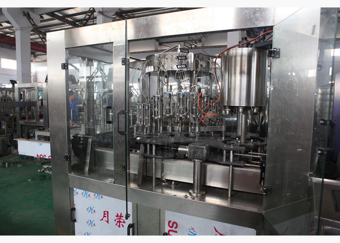 果汁灌裝機同時適用于果汁、茶飲料、功能飲料及果味奶飲料的灌裝。在溫度控制器的幫助下,該機器能夠進(jìn)行80-95度高溫?zé)峁嘌b。本設(shè)備采用瓶頸懸掛技術(shù),適用于各種瓶型,跟換瓶型只需調(diào)節(jié)傳送鏈的高度及出瓶玻璃即可,方便快捷。全機PLC控制變頻調(diào)速,自動化程度高,自動控制進(jìn)液,液位控制準(zhǔn)確,無滴漏。與物料接觸部分均為食品級304優(yōu)質(zhì)不銹鋼。是飲料廠家的理想選擇。