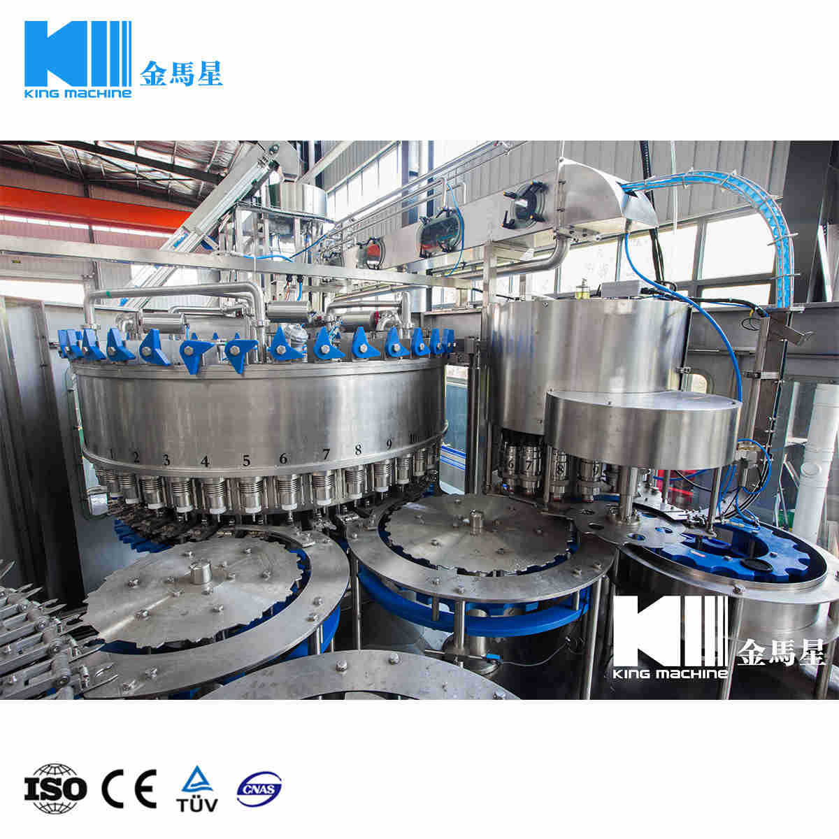 此設(shè)備主要應(yīng)用于灌裝飲料,包含沖瓶、灌裝和旋蓋三大功能。