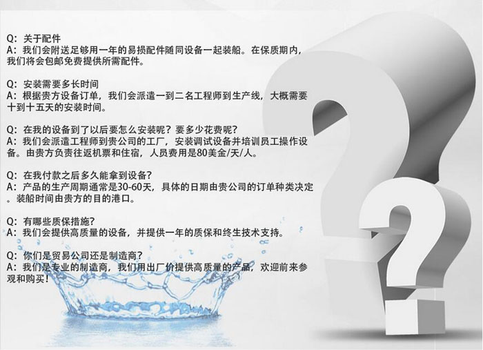 我們采用不同設(shè)備來(lái)生產(chǎn)純凈水和礦泉水。主要設(shè)備有石英砂過(guò)濾器、活性炭過(guò)濾器、鈉離子交換器、精密過(guò)濾器、反滲透過(guò)濾器、紫外線消毒機(jī)、臭氧發(fā)生器、儲(chǔ)水罐等。產(chǎn)量是0.5-50ton/hour。該設(shè)備能夠有效去除懸浮物、有機(jī)物、重金屬離子離子、氧化物、膠體等,有效軟化水,使得產(chǎn)出的水能夠滿足飲用水的標(biāo)準(zhǔn)。