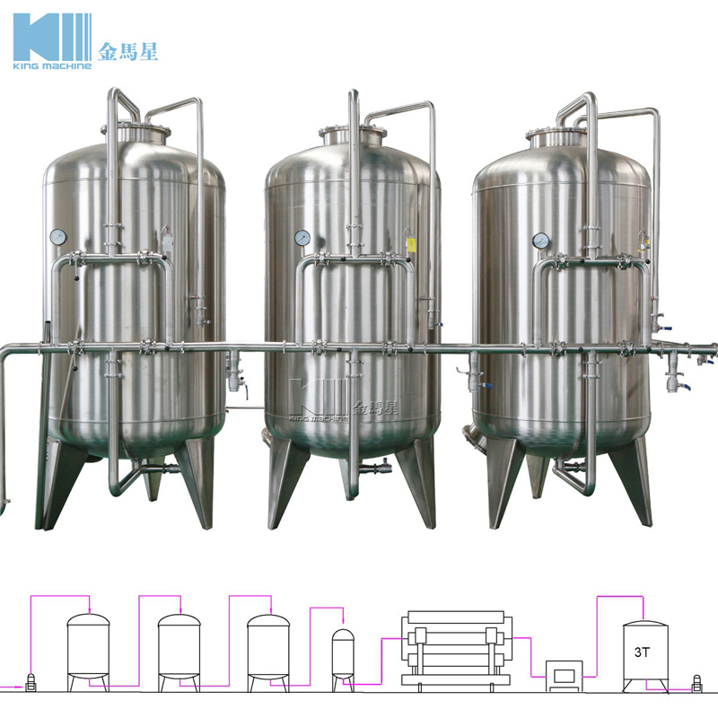 我們采用不同設(shè)備來(lái)生產(chǎn)純凈水和礦泉水。主要設(shè)備有石英砂過(guò)濾器、活性炭過(guò)濾器、鈉離子交換器、精密過(guò)濾器、反滲透過(guò)濾器、紫外線消毒機(jī)、臭氧發(fā)生器、儲(chǔ)水罐等。產(chǎn)量是0.5-50 ton/hour。該設(shè)備能夠有效去除懸浮物、有機(jī)物、重金屬離子離子、氧化物、膠體等,有效軟化水,使得產(chǎn)出的水能夠滿足飲用水的標(biāo)準(zhǔn)。