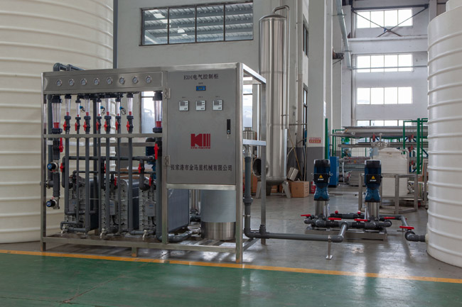 EDI設(shè)備主要包括:增壓泵、EDI膜塊、EDI電源控制器、隔膜壓力表、流量計、電阻儀、連接管道閥門、機架