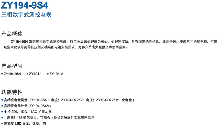 ZY194-9S4三相數(shù)字式測(cè)控電表